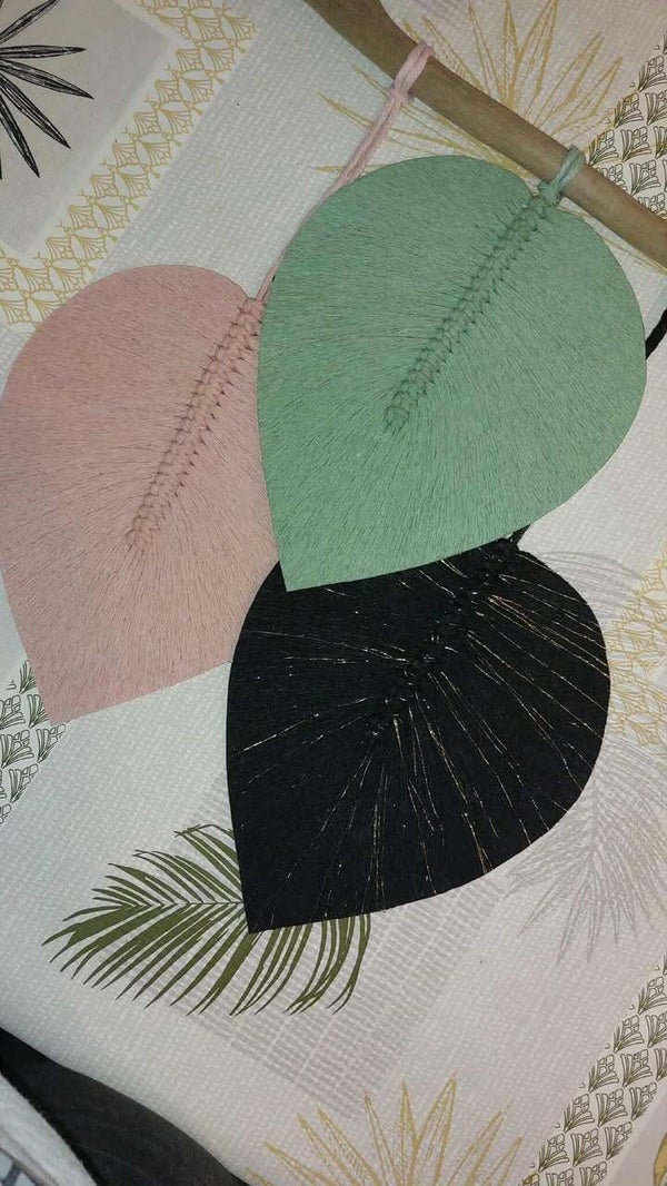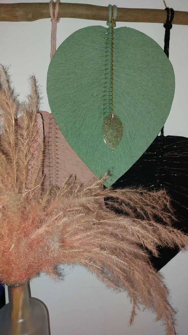 Chaque modèle raconte une histoire... Le modèle suspension en macramé Sabrina est un joli mélange de feuilles stabilisées.l, une touche élégante argentée ou dorée avec ses feuilles en filigrane viendront terminé cette suspension en macramé. Plusieurs options sont disponibles comme le choix des couleurs, les feuilles filigranes peuvent être ôtées et donner un cachet plus naturel.