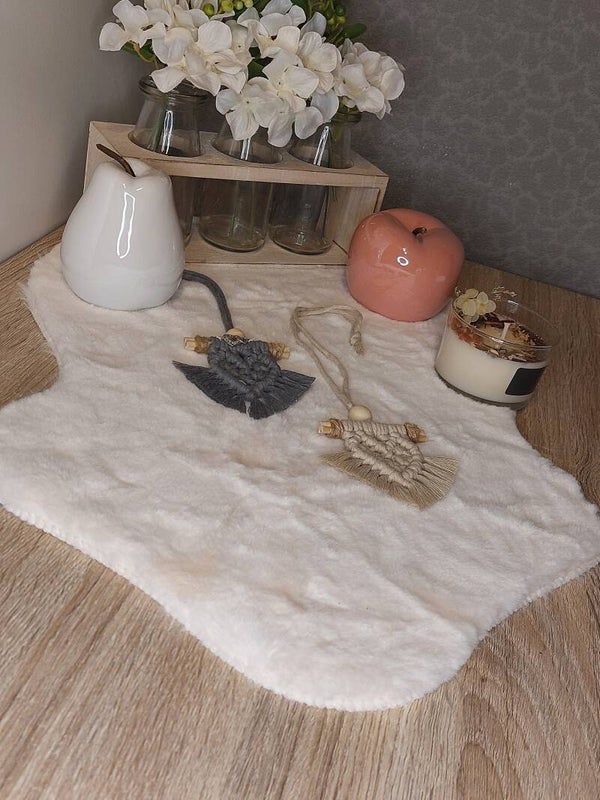 Petite suspension en macramé à accrocher à un rétroviseur .