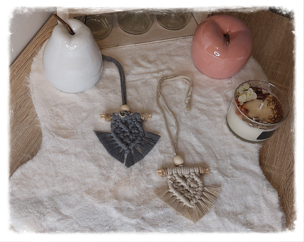 🌸 À suspendre à votre rétroviseur de voiture, ce duo est parfait pour offrir (ou s’offrir) une ambiance bohème et artisanale, où chaque détail compte.