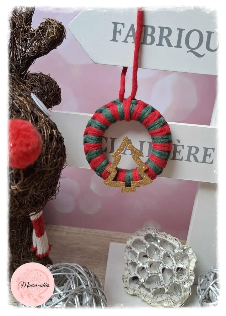 La mini couronne de Noël en macramé avec son petit sapin doré viendra décoré ton sapin. Réaliser en corde peignée de qualité sur un anneau de 6.5 cm. Disponible en deux variantes de coloris.