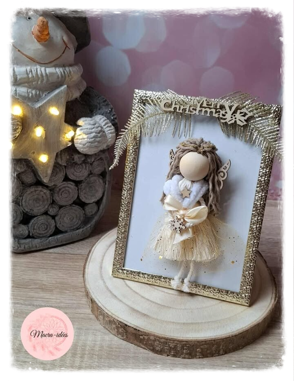 Ce joli ange en macramé viendra sublimer ta décoration de Noël. l'ange est réalisé avec de la corde peignée 3mm de qualité, elle sont toutes différentes car il est juste impossible de reproduire ces pièces à l'identique. La décoration peut varié.