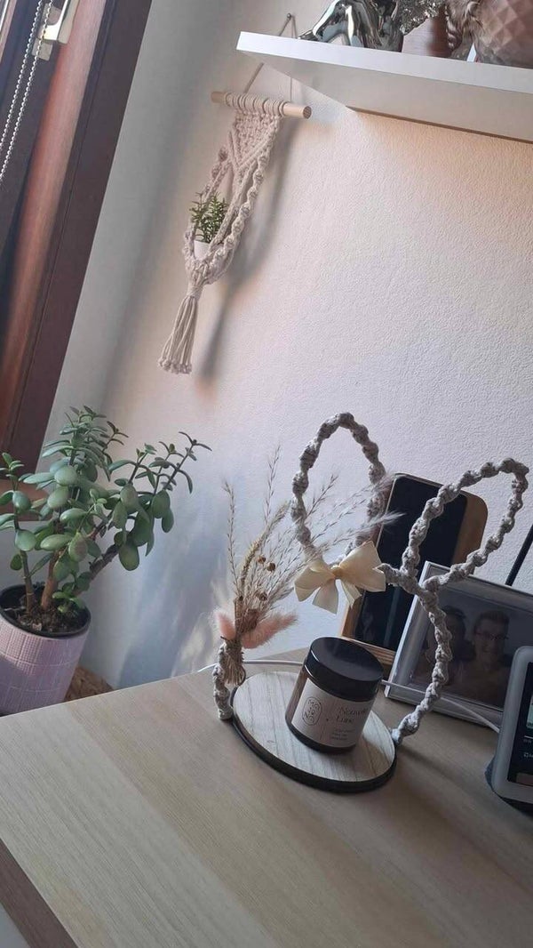 Ce joli plateau en forme de lapin en macramé annonce le printemps et la douceur des beaux jours. Pâques sera bientot à nos portes, pourquoi pas s'offrir une jolie décoration pour vos tables ou simplement vos décorations de saison. Cette merveille est réalisée en corde peignée coloris léopard de chez bobinny. Décorer de son noeuds en satin crème et de son petit bouquet en fleurs sechées. Une touche bohème dans vos intérieurs.