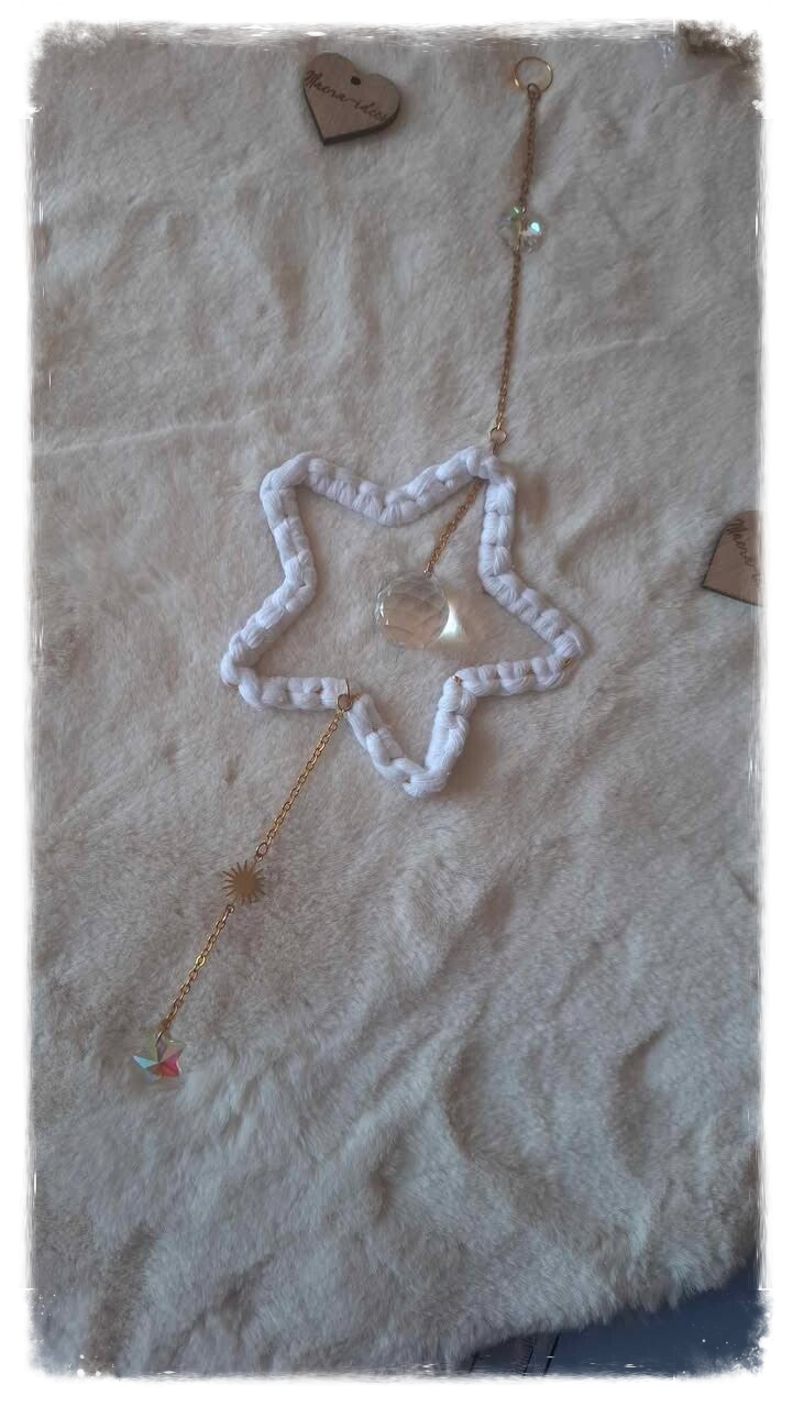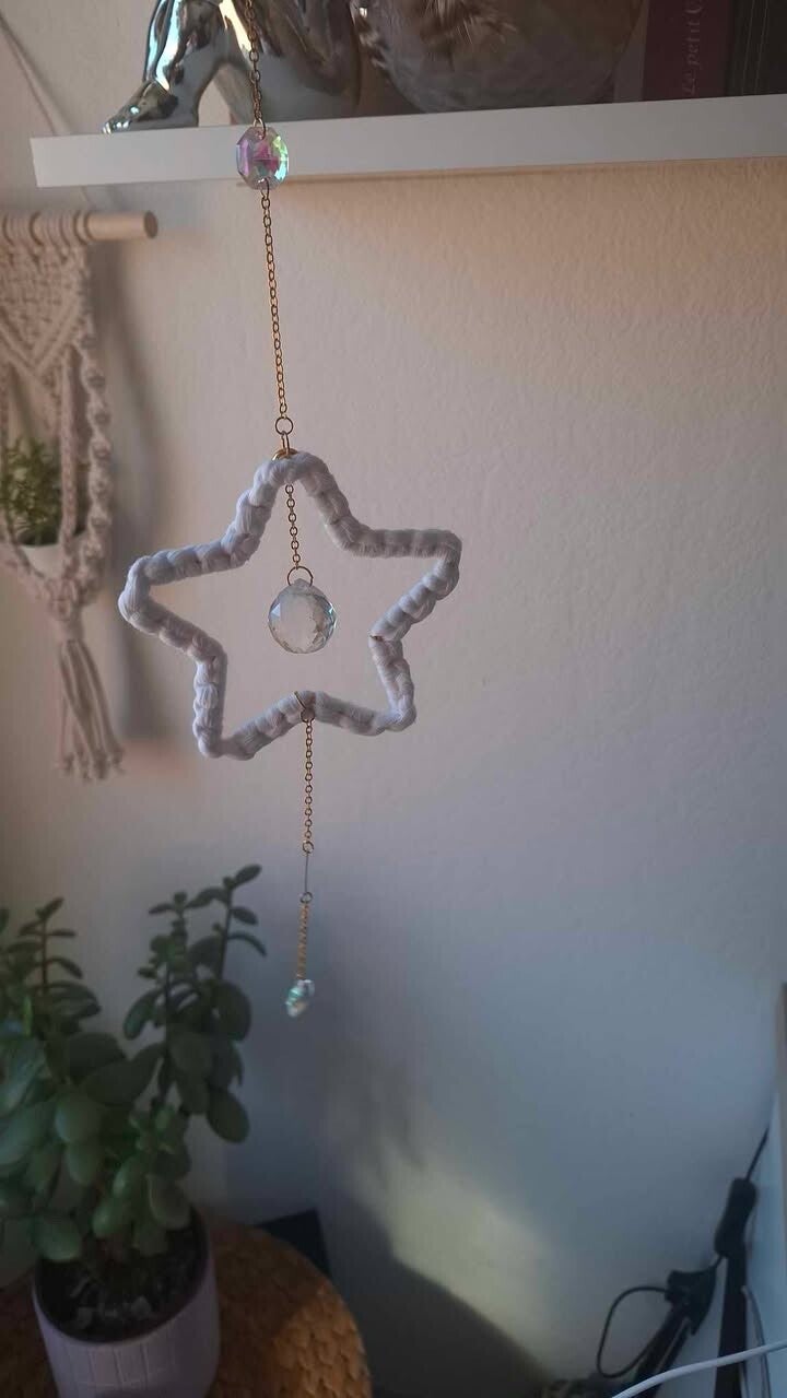 Ce joli attrape-soleil en macramé, modèle Nova, viendra sublimer ta fenêtre et ton intérieur avec ses prismes et sa douceur. Il viendra apporter par l'effet du soleil à l'intérieur des prismes, une nouvelle énergie dans ton intérieur.