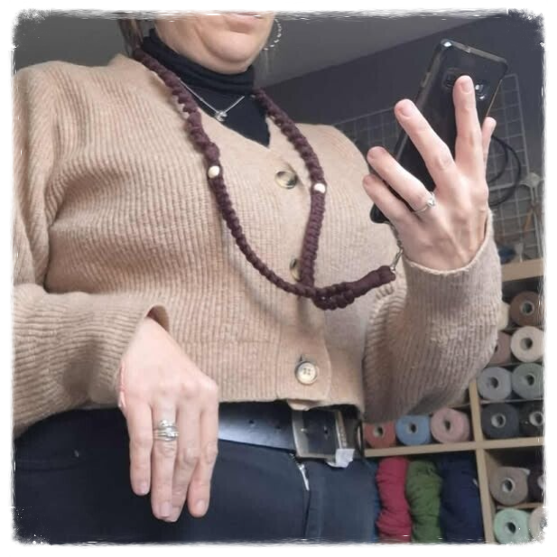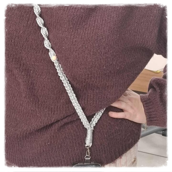 La lanière pour portable en macramé est l'accessoire idéal pour ne plus perdre son portable tout en le gardant à portée de mains et garder les mains libre,l'accessoire indispensable et tendance en macramé.