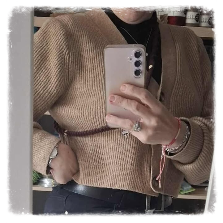 La dimension, la matière et le coloris de la lanière dépend de ta préférence , 120 cm pour le porter devant soi mais aussi en bandouillère ou en 140 cm pour le porter en bandouillère, elle est réalisable dans les coloris mentionné en photo ( voir nuancier) en corde tressée ou peignée 3mm et aussi en corde métallique. Tu reçois la lanière avec le pads à placer dans ta coque de portable ( attention coque indispensable pour cet article).