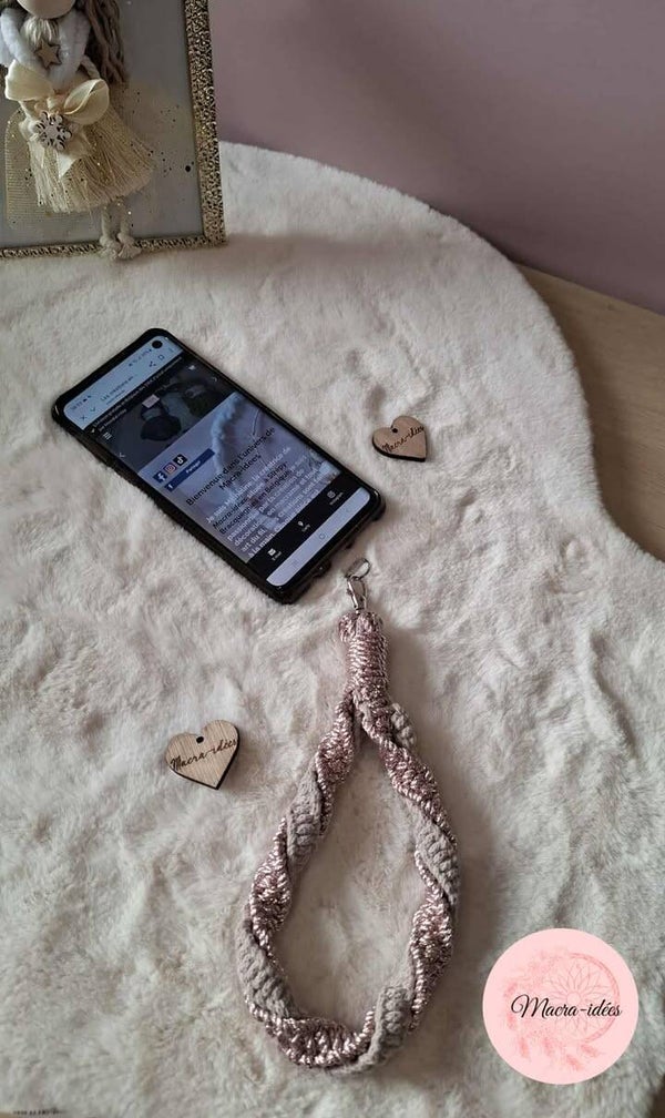 La lanière courte pour portable en macramé est l'accessoire idéal pour ne plus perdre son portable tout en le gardant à portée de mains et garder les mains libre,l'accessoire indispensable et tendance en macramé.